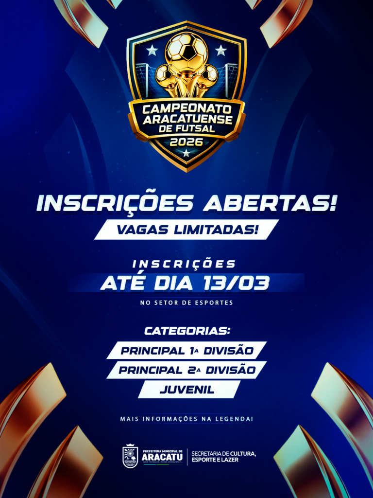 ESTÃO ABERTAS AS INSCRIÇÕES PARA O CAMPEONATO ARACATUENSE DE FUTSAL 2026
