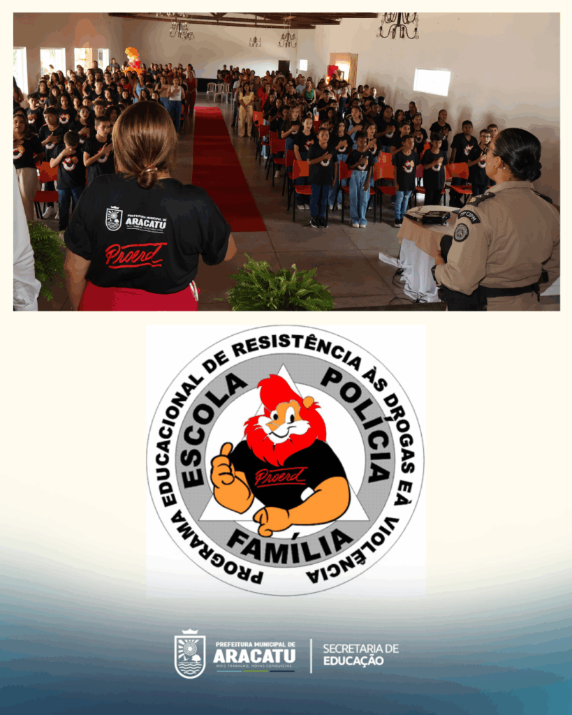 Trabalhando em parceria com a escola e as famílias, o PROERD busca formar cidadãos conscientes, preparados para dizer não às drogas e para construir um futuro mais seguro, responsável e longe da violência. Em mais de 60 países, o programa já impactou milhões de jovens, e em Aracatu, tem sido um importante aliado na formação das novas gerações.